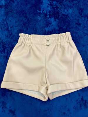 Стильные шорты из экокожи для девочки, размер 98 см (3 года). Бежевый цвет и удобная резинка на поясе обеспечивают комфорт.