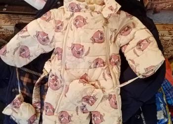 Комбинезон для девочки в отличном состоянии с меховой подстёжкой +рукавички и такие же на ножки.